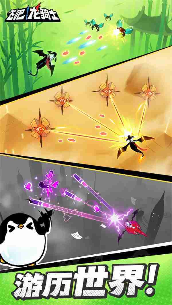 《飞吧龙骑士》是一款集合了飞行弹幕射击、、、Roguelike要素和挂机养成的休闲手游,,极具创意的吞食子弹反击玩法,,,,突破传统飞行射击的刻板限制,,带来了独特的爽快清屏体验。。