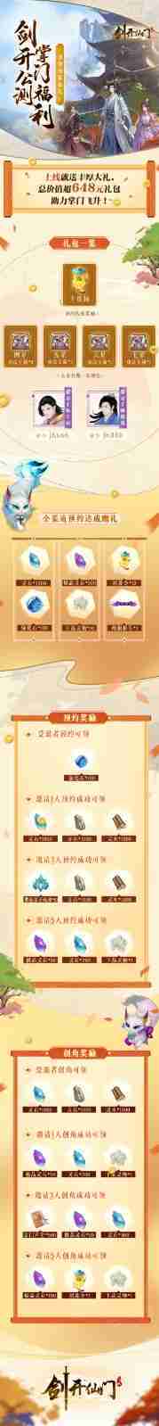 游戏为大家准备了海量的福利,,包括上线即可获得的全渠道预约礼包、、、、十连抽等福利,,,,输入密令“JK666”、、、“JK888”即可领取紫色弟子,,,达到金丹期后还有功法宝箱可领,,,,助力全宗上下实力提升……所有奖励总价值超过648元,,而邀请好友一起体验,,,,更可以获得额外的奖励哦~