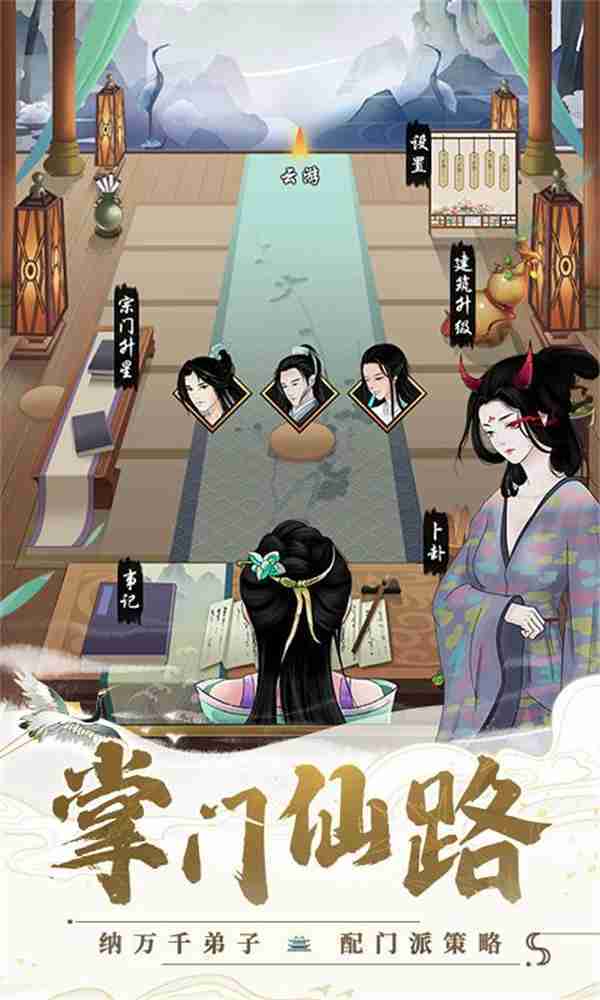 在游戏中,,,,玩家需要作为掌门去经营整个门派,,,可以兢兢业业,,,也可以做个甩手掌门,,或者不务正业,,,寄情山水……总之一句话,,,修仙不求人,,花式做掌门!!!