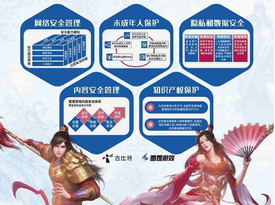 本次赏金大对决展区以网络安全管理、、内容安全管理、、未成年人保护、、隐私和数据安全、、、知识产权保护五个模块介绍公司游戏安全工作成果,,,,体现赏金大对决高度重视网络安全,,严格遵守相关法律法规要求,,,,积极承担企业主体责任。。。